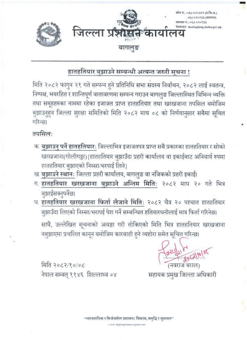 हातहतियार बुझाउने सम्बन्धि अत्यन्त जरुरी सूचना