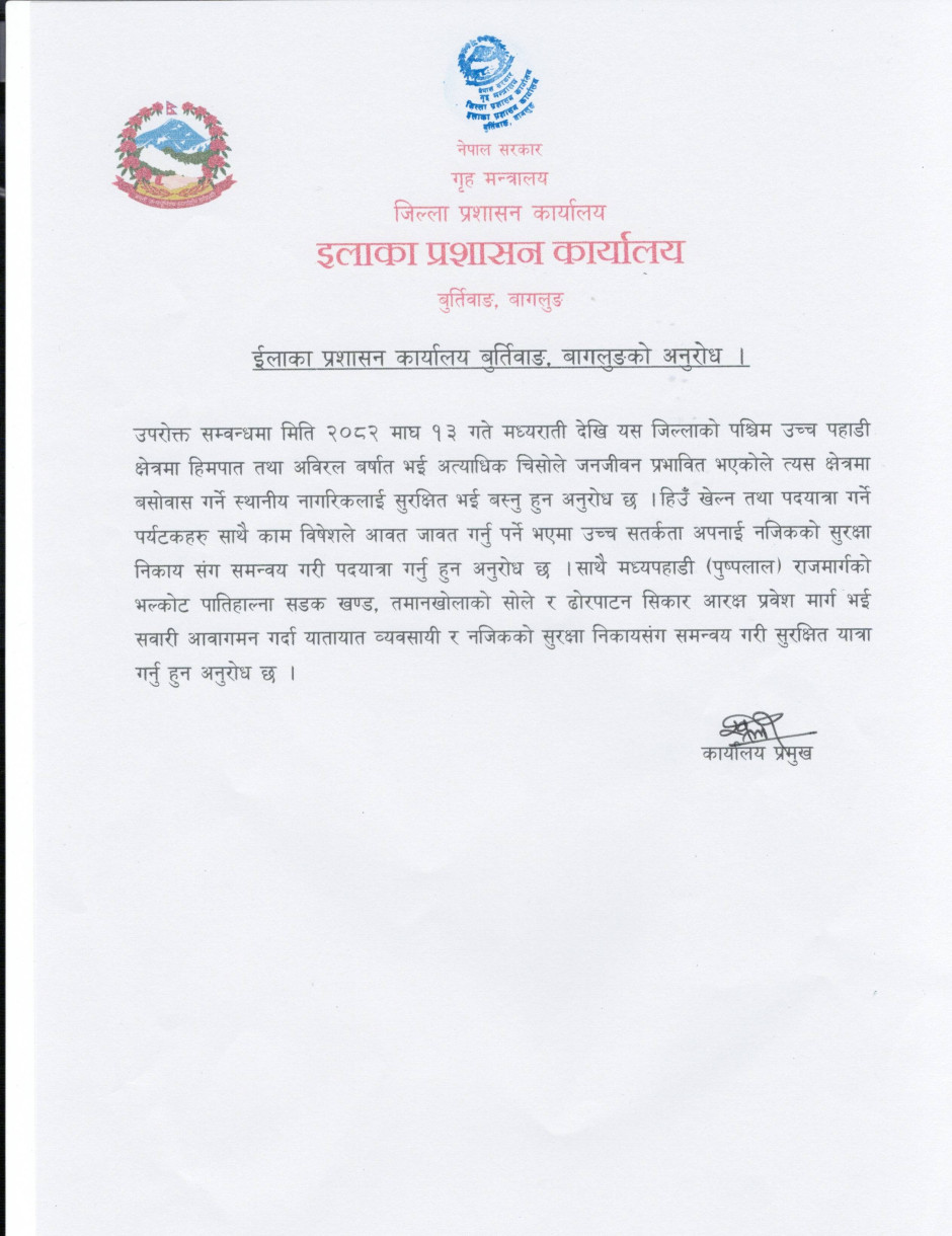 © सर्वाधिकार सुरक्षित इलाका प्रशासन कार्यालय, बुर्तिवाङ बागलुङ